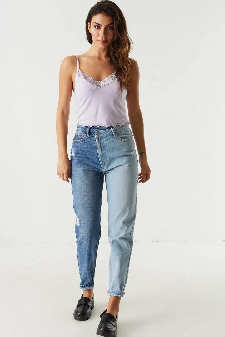 A staple tiny top you can pair perfectly with your fave high-rise jeans! This cami features a v-neckline with lace trimming, adjustable spaghetti straps, cropped length and lettuce trimming. Size Runs Small.