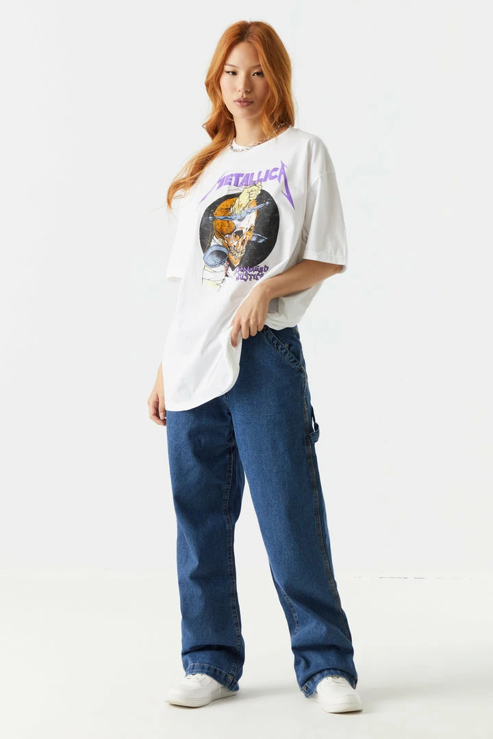 Justice for the damaged! Treat your inner metalhead to this classic band slam. This t-shirt features Metallica Damaged Justice front graphic, crew neckline and short sleeves. Size runs small.