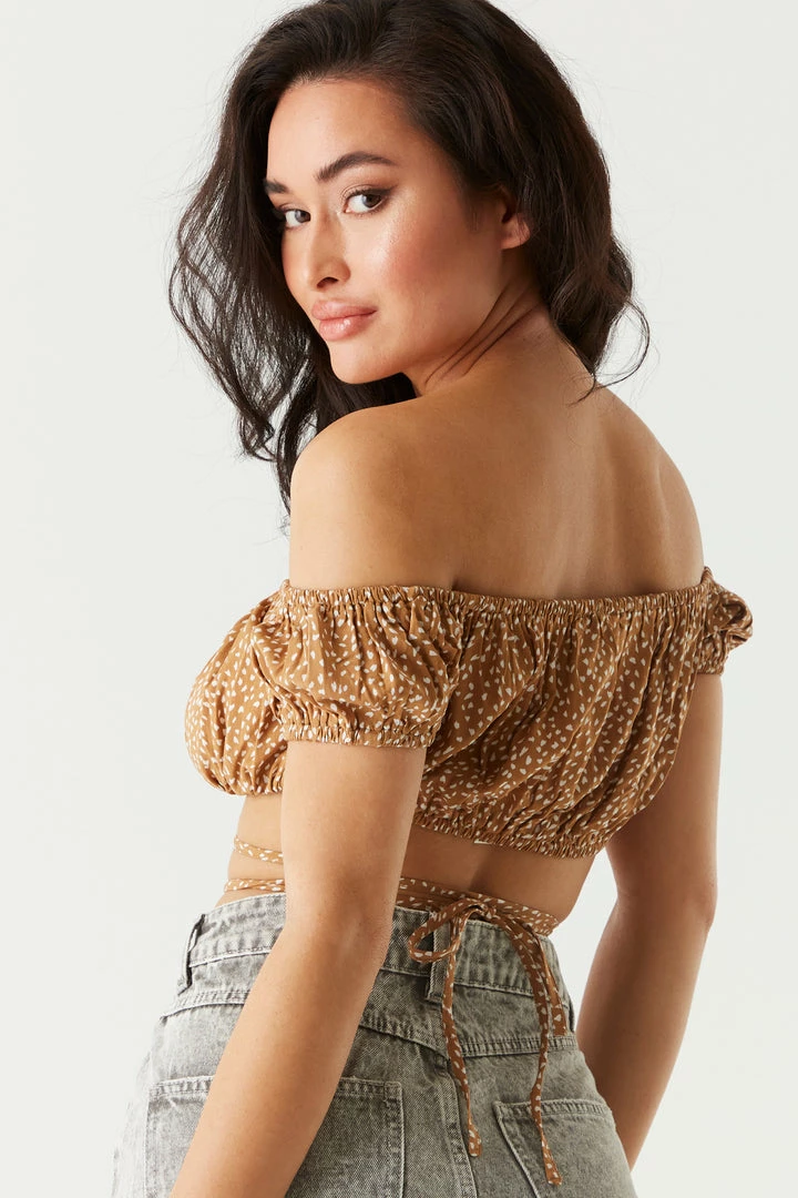 Stitches Ladies Tops Off The Shoulder Printed Milkmaid Cropped Top