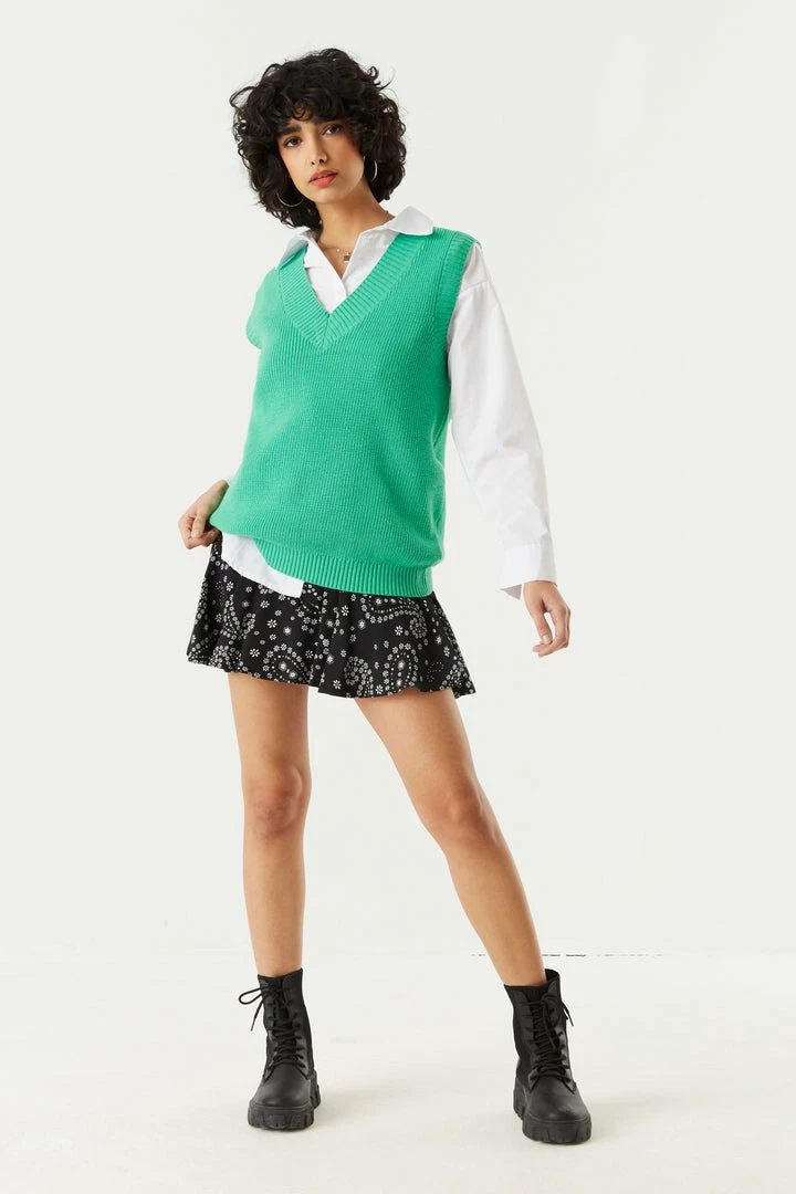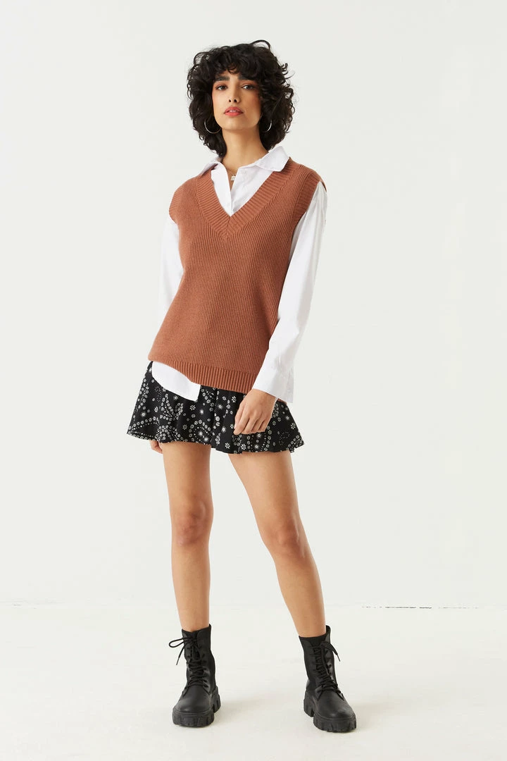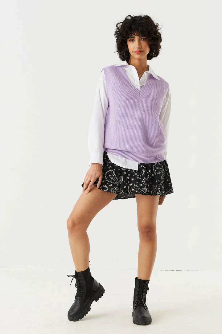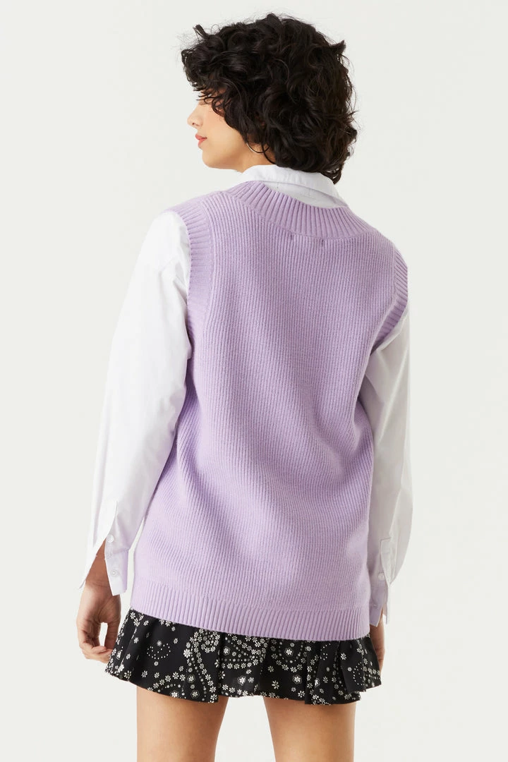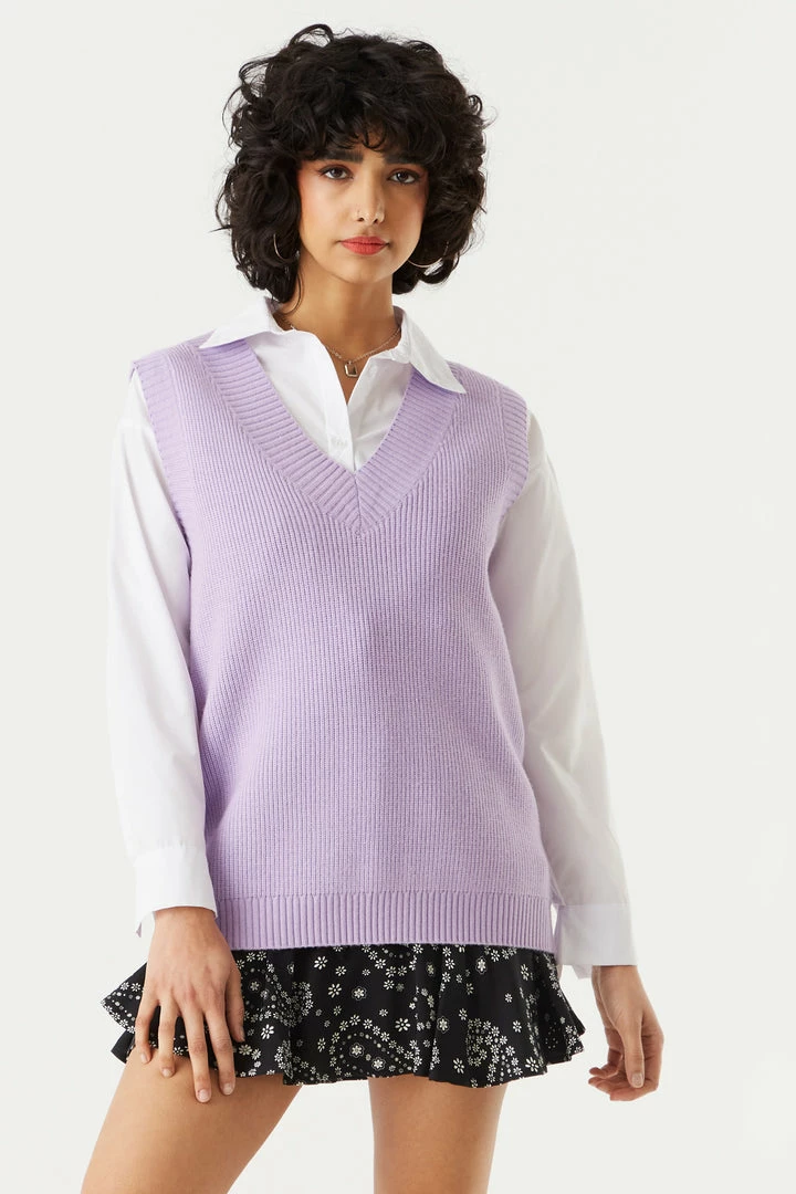 A trendy and preppy knit that’ll become your “vest” kept secret. Perfect for layering with a classic button-up top or a plain tee. This sweater vest features a v-neckline, ribbed knit material, sleeveless arms and an oversized fit. Size Runs Small.
