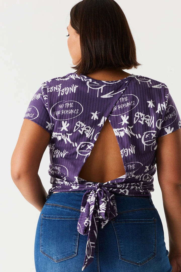 Business in the front, party in the back baby! This top features a soft ribbed material, short sleeves and an open back design with self-tie details.