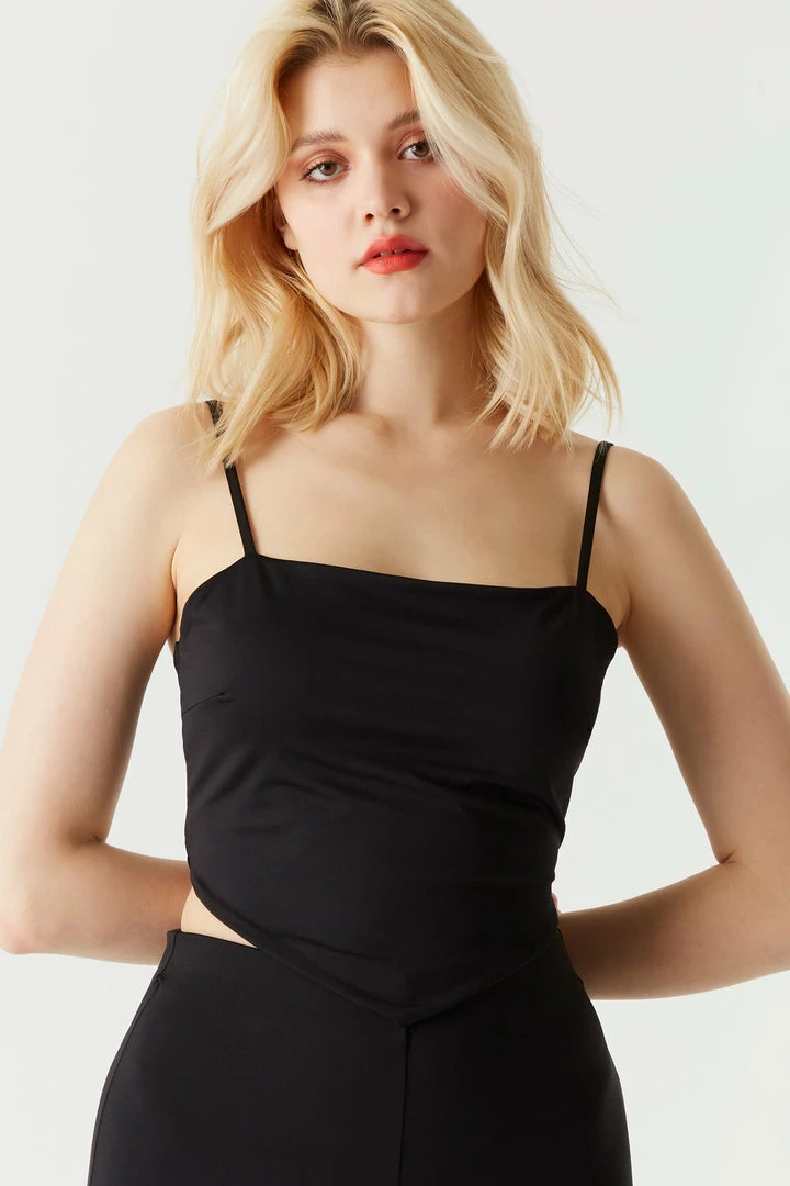 It’s all abut the details – the hanky hem is the talking point of this must-have top! This top features a straight neckline, adjustable spaghetti straps, smocked back and a pointed Hanky hem. Set me up with High-Rise Flare Pant. Size Runs Small.