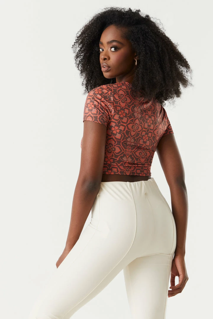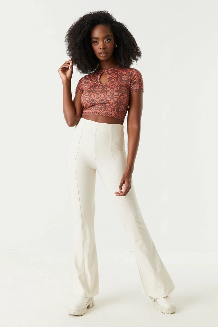 Kick your top collection up a notch with this cute out-out tee. This t-shirt features cropped fit, teardrop neck line cut out, printed, cropped fit and short sleeves. Size runs small.