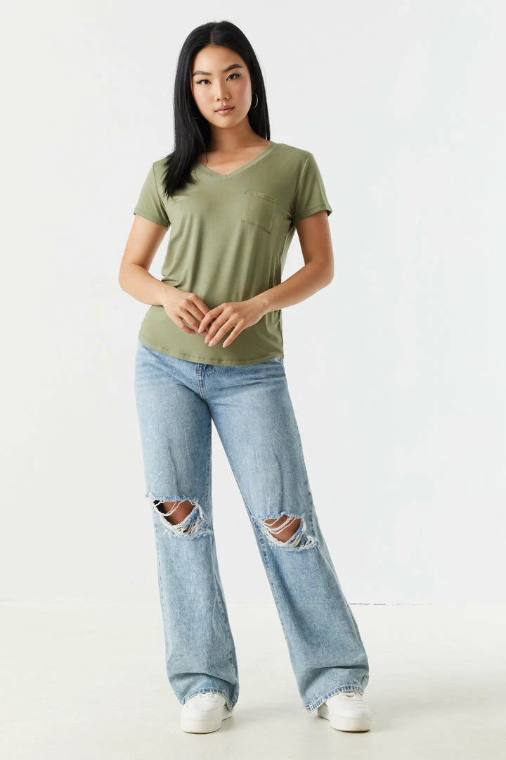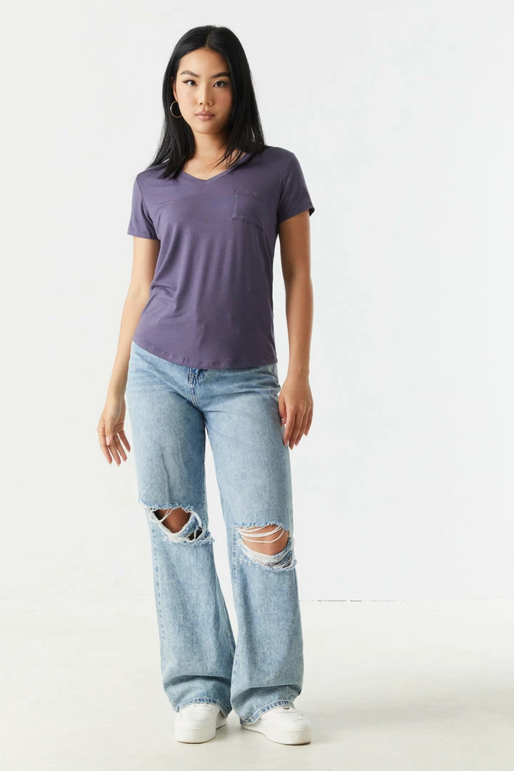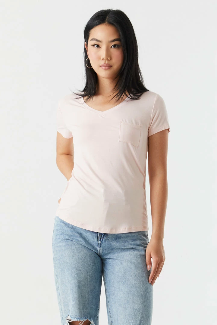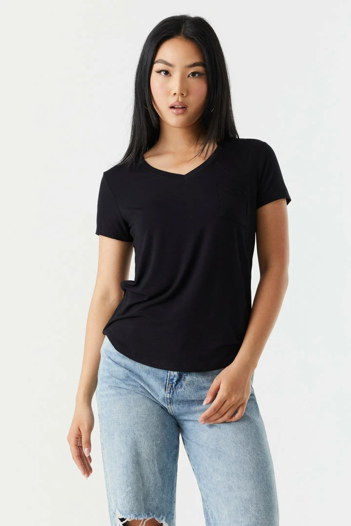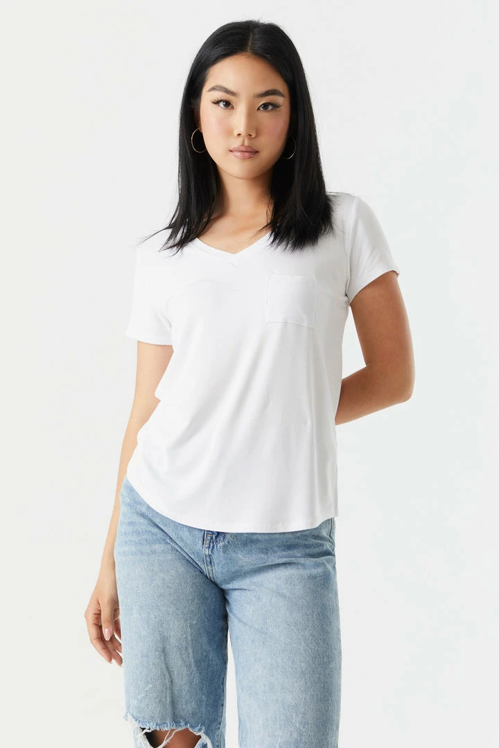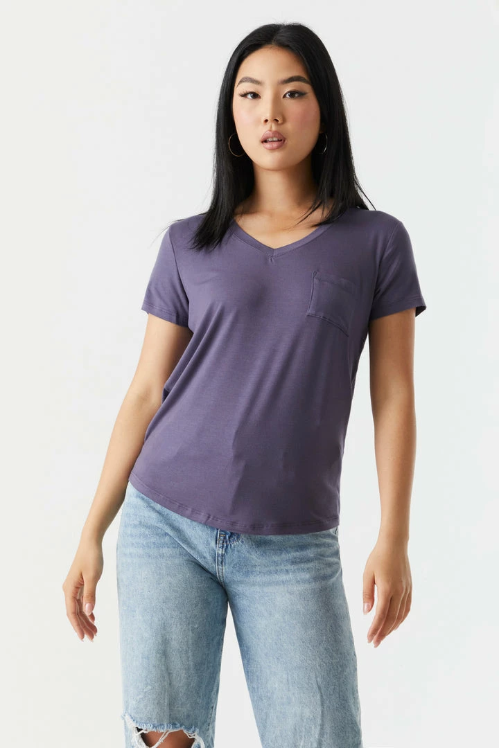 Rest and relaxation are key to looking fresh! Step up your down time look with this comfy tee. This t-shirt features short sleeves, v-neckline, relaxed fit and single pocket. Size runs small.