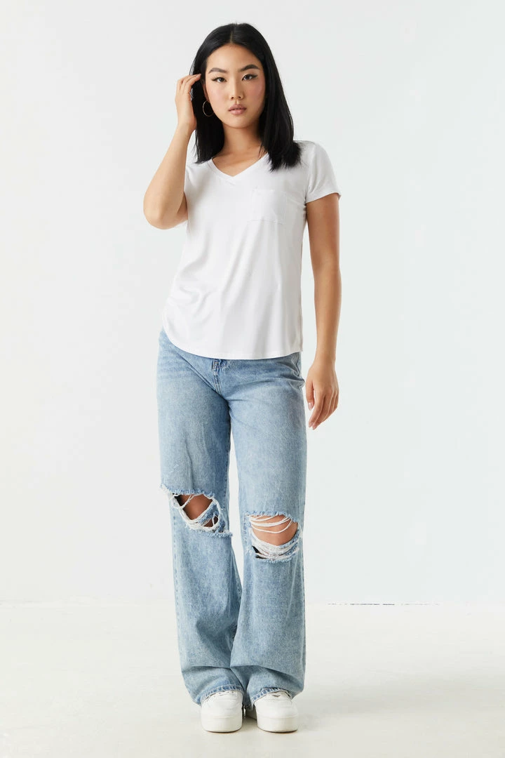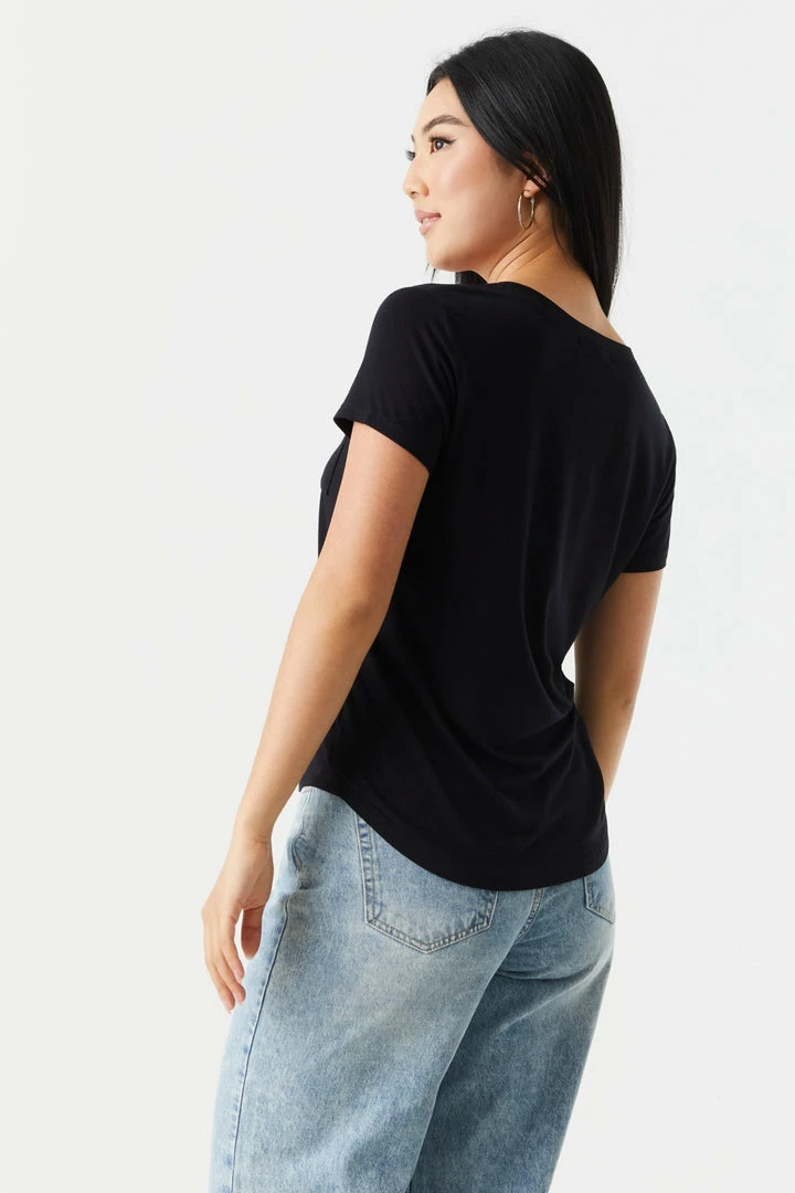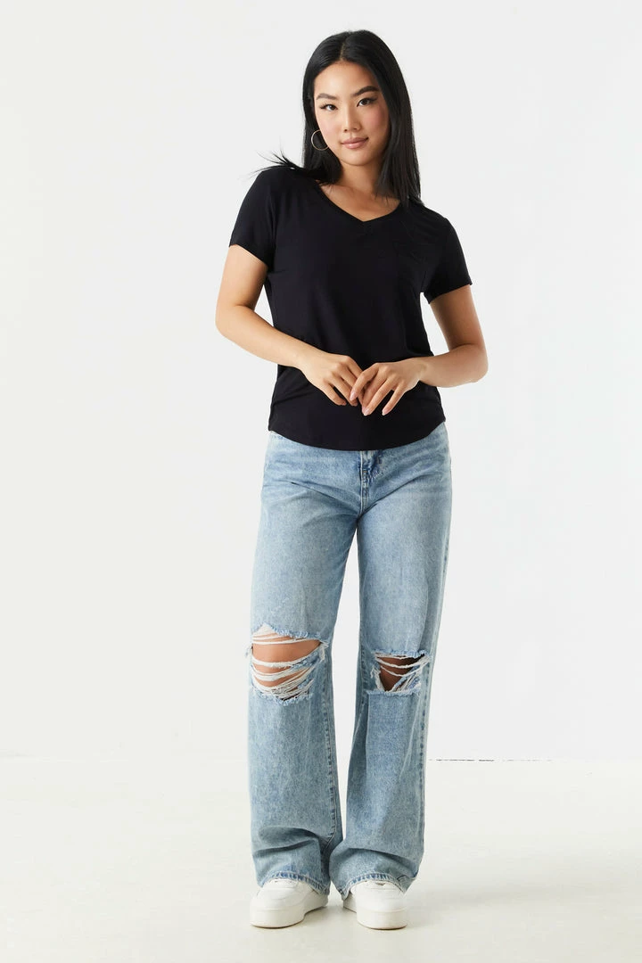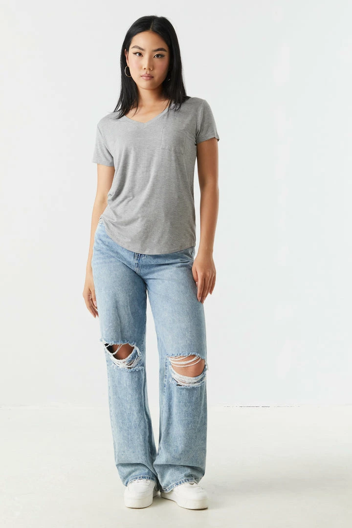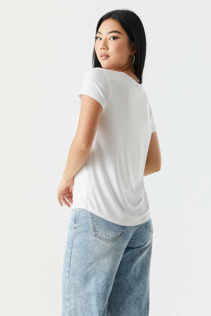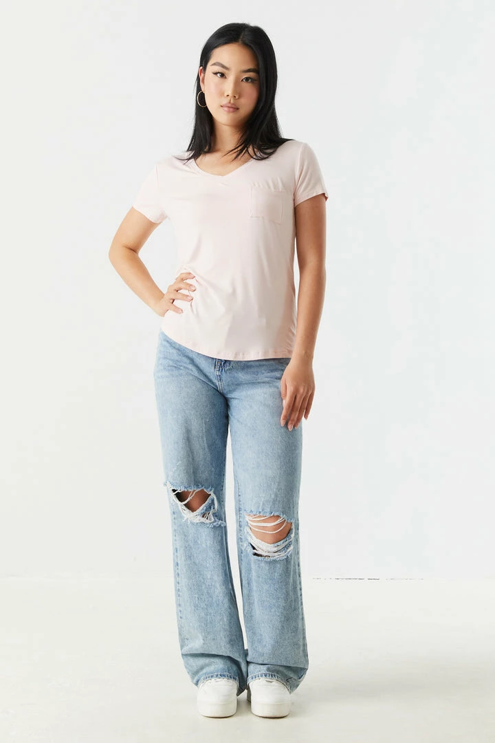 Rest and relaxation are key to looking fresh! Step up your down time look with this comfy tee. This t-shirt features short sleeves, v-neckline, relaxed fit and single pocket. Size runs small.