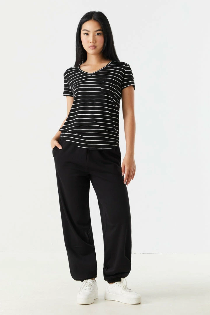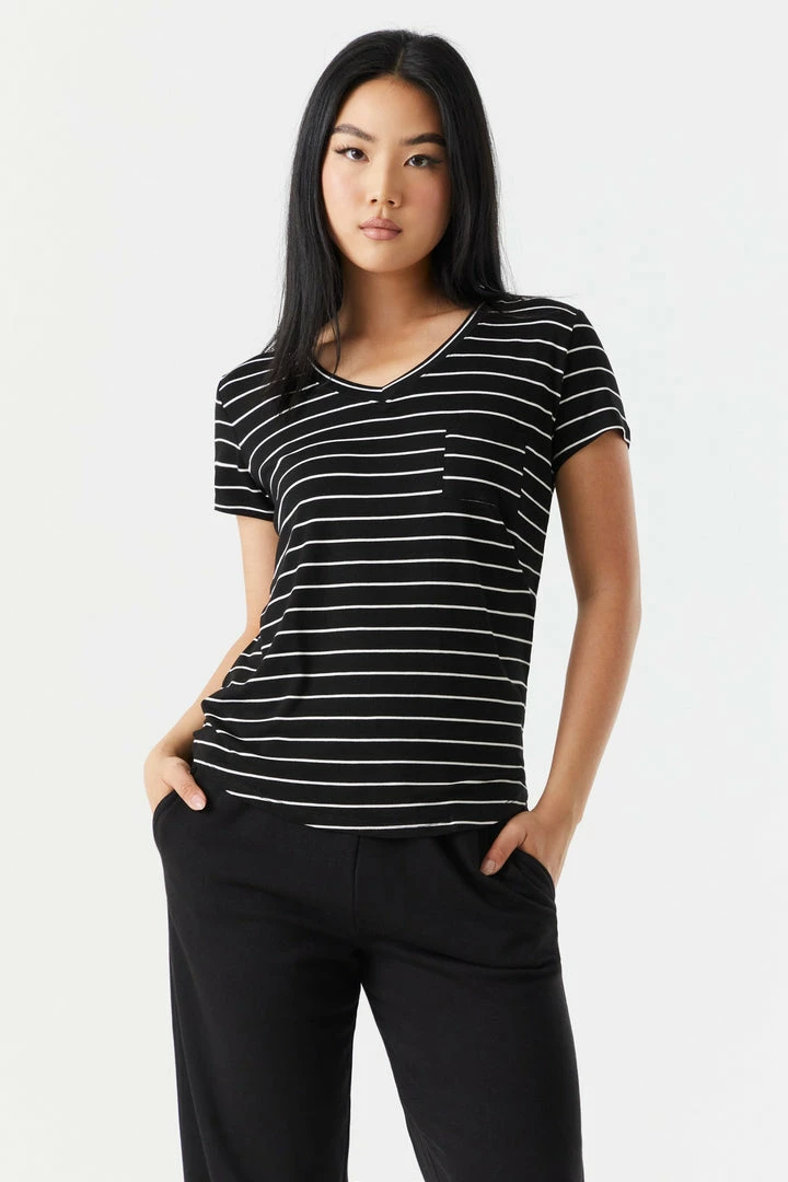 Rest and relaxation are key to looking fresh! Step up your down time look with this comfy tee. This t-shirt features short sleeves, v-neckline, relaxed fit and single pocket. Size runs small.
