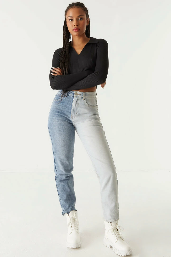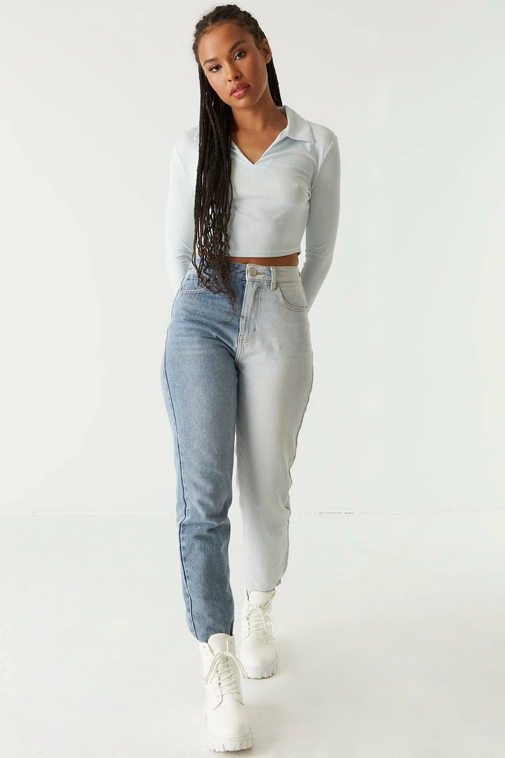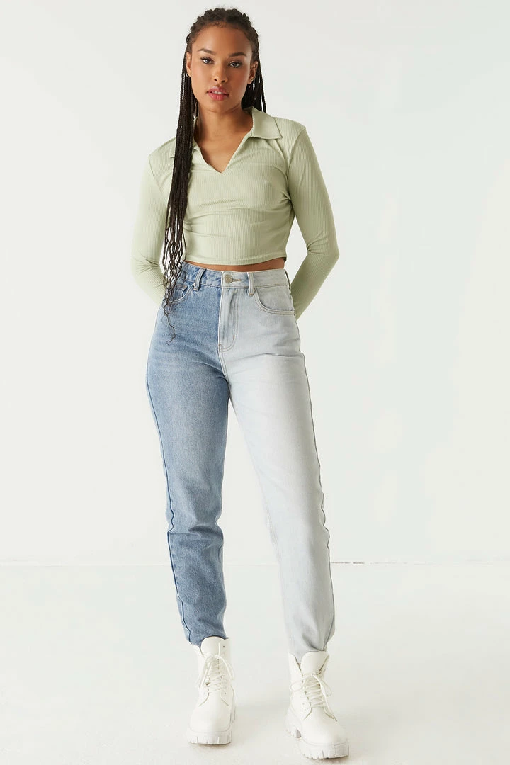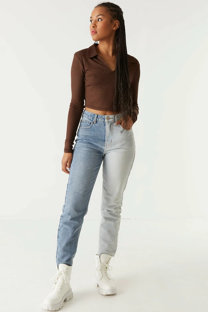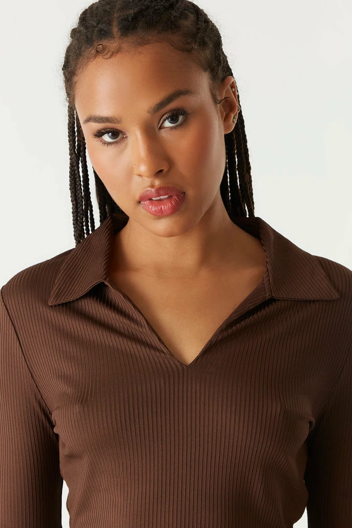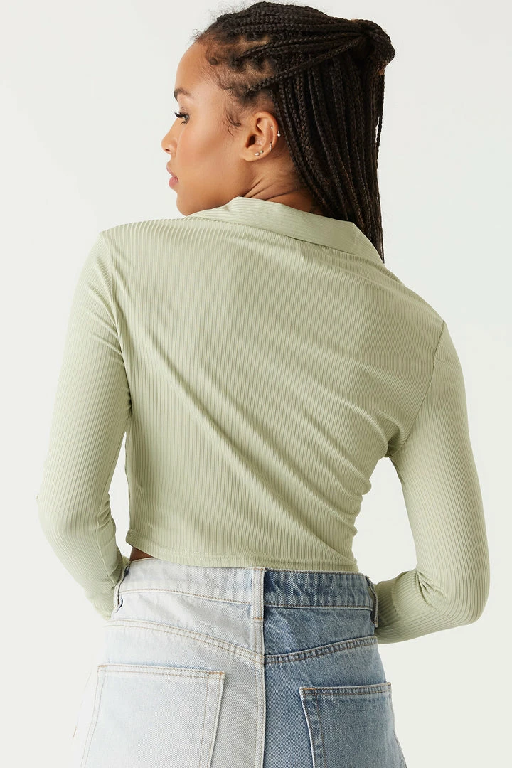 Crop it like it’s hot! Keep it short and sweet with a staple top. This top features a v-neckline, Johnny collar, ribbed knit material, long sleeves and cropped length. Size runs small.
