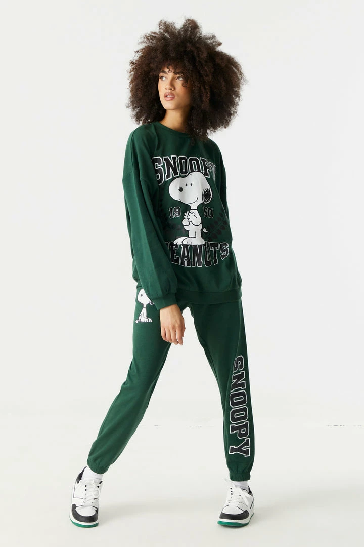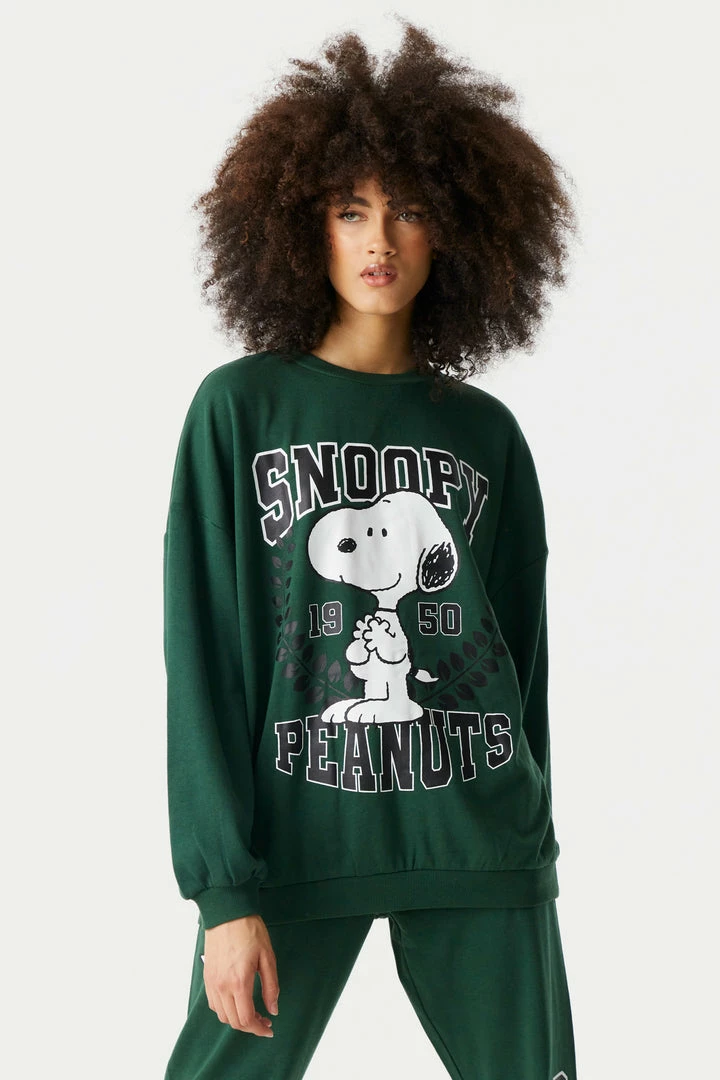 Don’t worry about allergies, you can snuggle with this pup all you want! This sweatshirt features Snoopy front graphic, long sleeves, fleece interior, ribbed knit cuffs, crew neck and ribbed knit hem. Size Runs Small. Complete the look with the Snoopy Graphic Fleece Varsity Jogger.