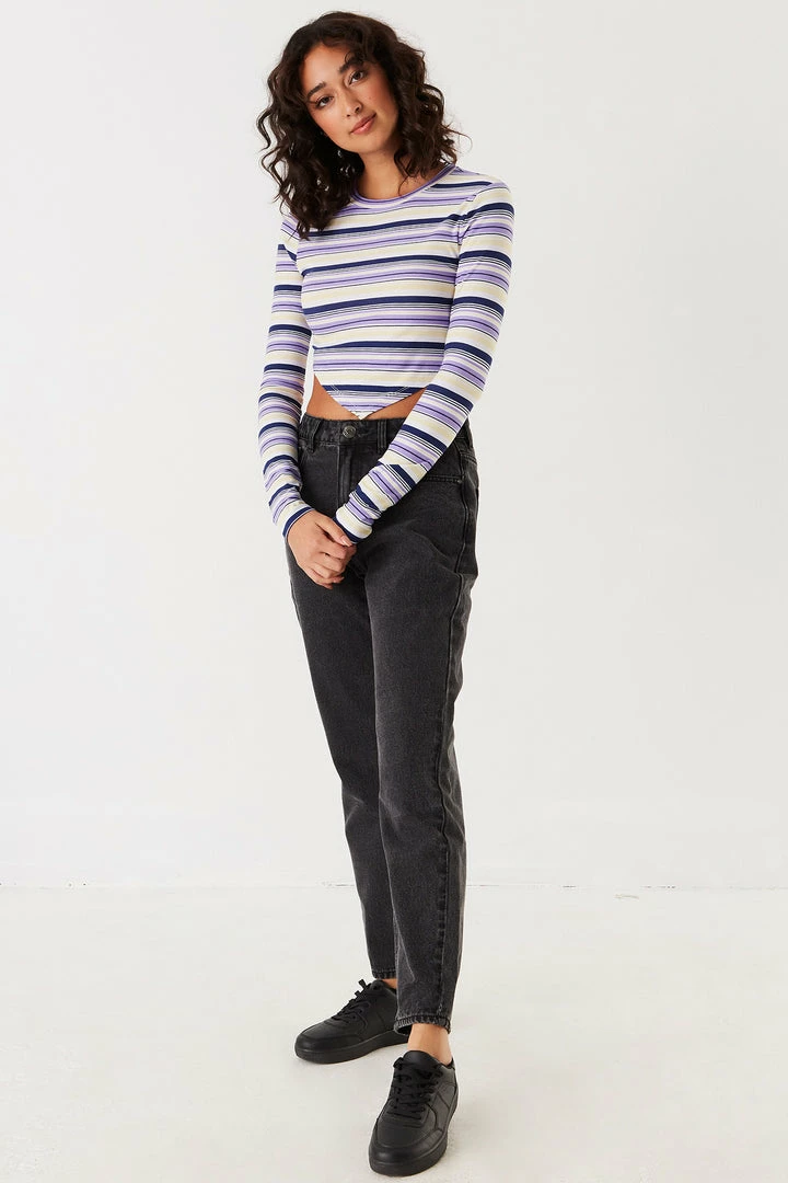 Stitches Ladies Tops Soft Striped Pointed Hem Long Sleeve Top