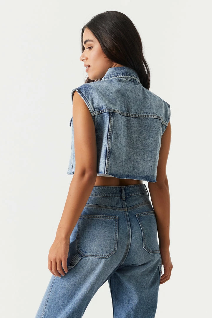 Crop boring out of the picture and stand out in this statement vest. This vest features button-up front, two front chest pockets, collared neck and cropped fit. Size Runs Small.