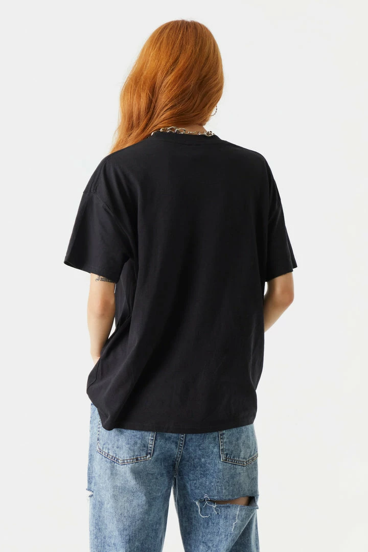 Everyone loves a good 90’s model, but this shirt is serving 90’s supermodel. This t-shirt features Vintage rider moto club front graphic, crew neckline, boyfriend fit and short sleeves. Size runs small.