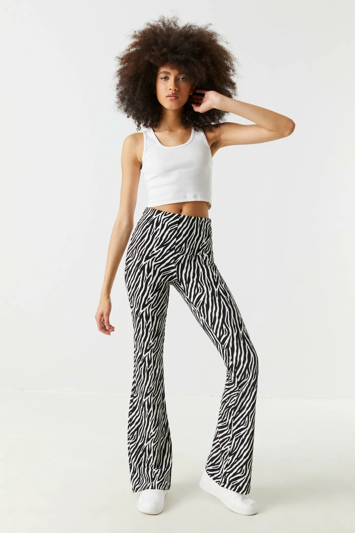 Stitches Ladies Zebra Print High-Rise Crepe Knit Flare Pant