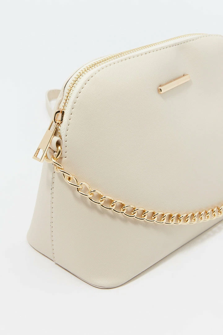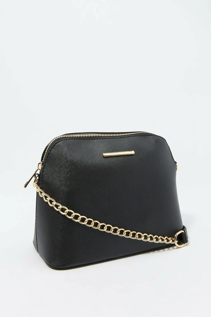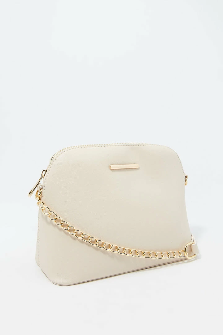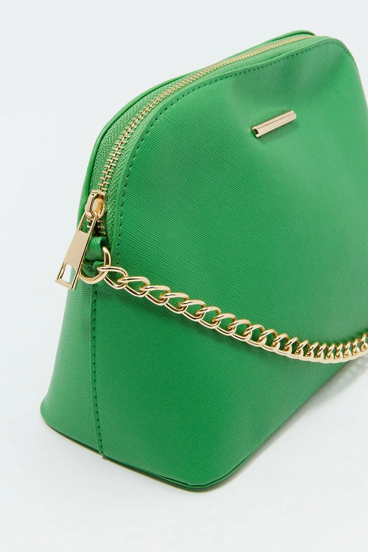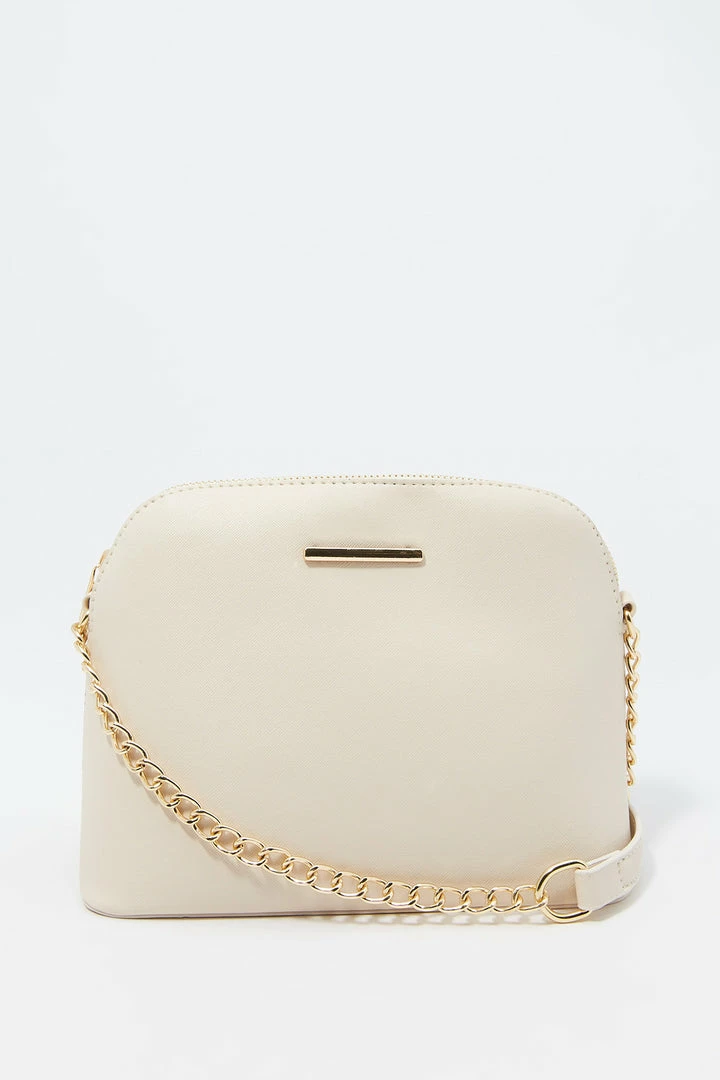 Sunglasses? Check! Phone? Check! Wallet? Check! Make sure you are ready for the day with this purse that pairs with everything! This bag features dome compartment, zip-up closure and crossbody chain strap.