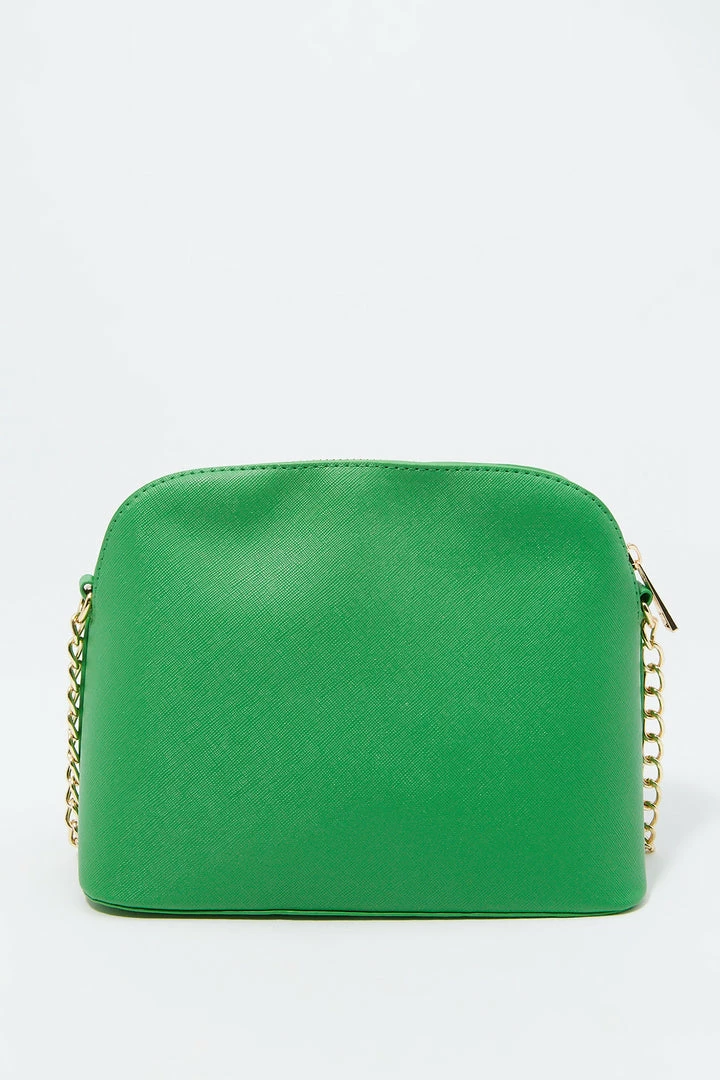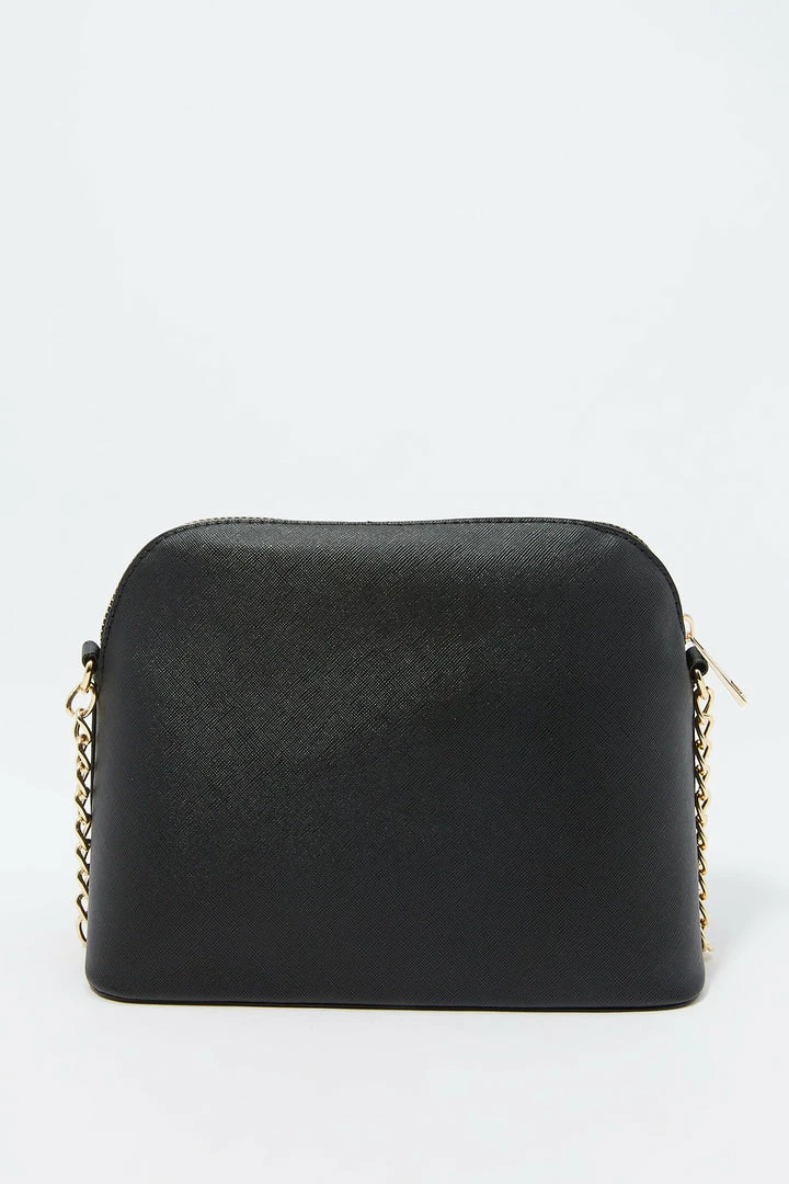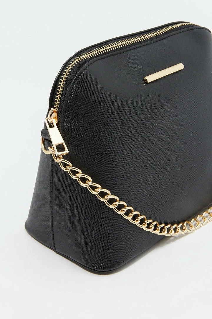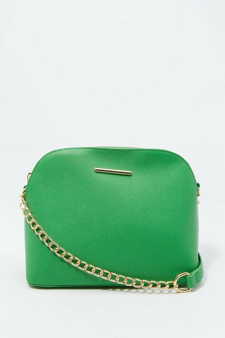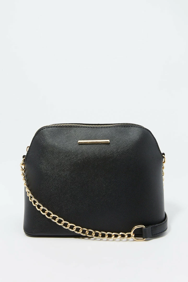 Sunglasses? Check! Phone? Check! Wallet? Check! Make sure you are ready for the day with this purse that pairs with everything! This bag features dome compartment, zip-up closure and crossbody chain strap.