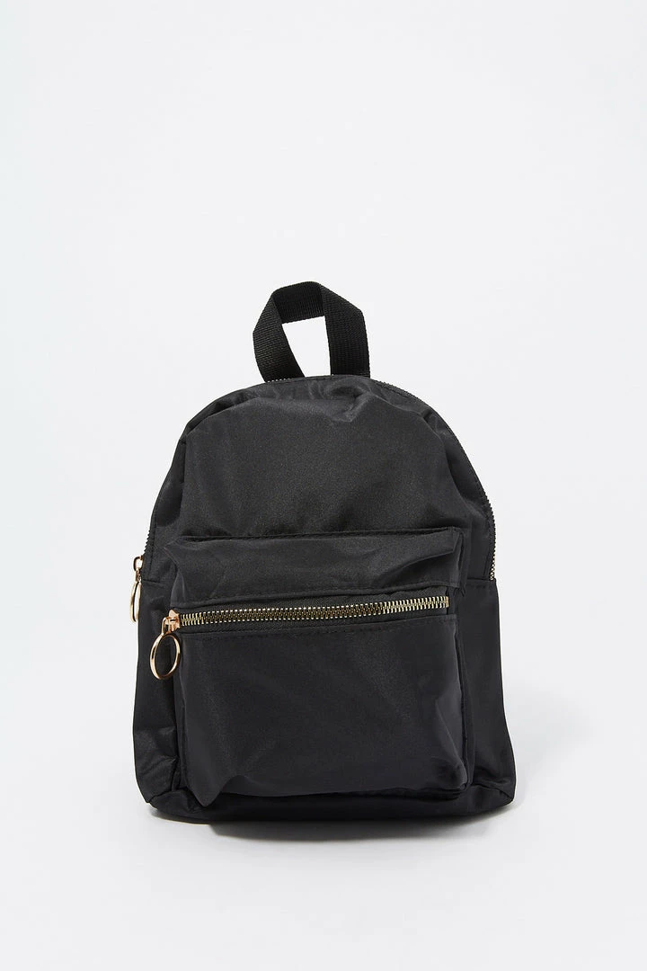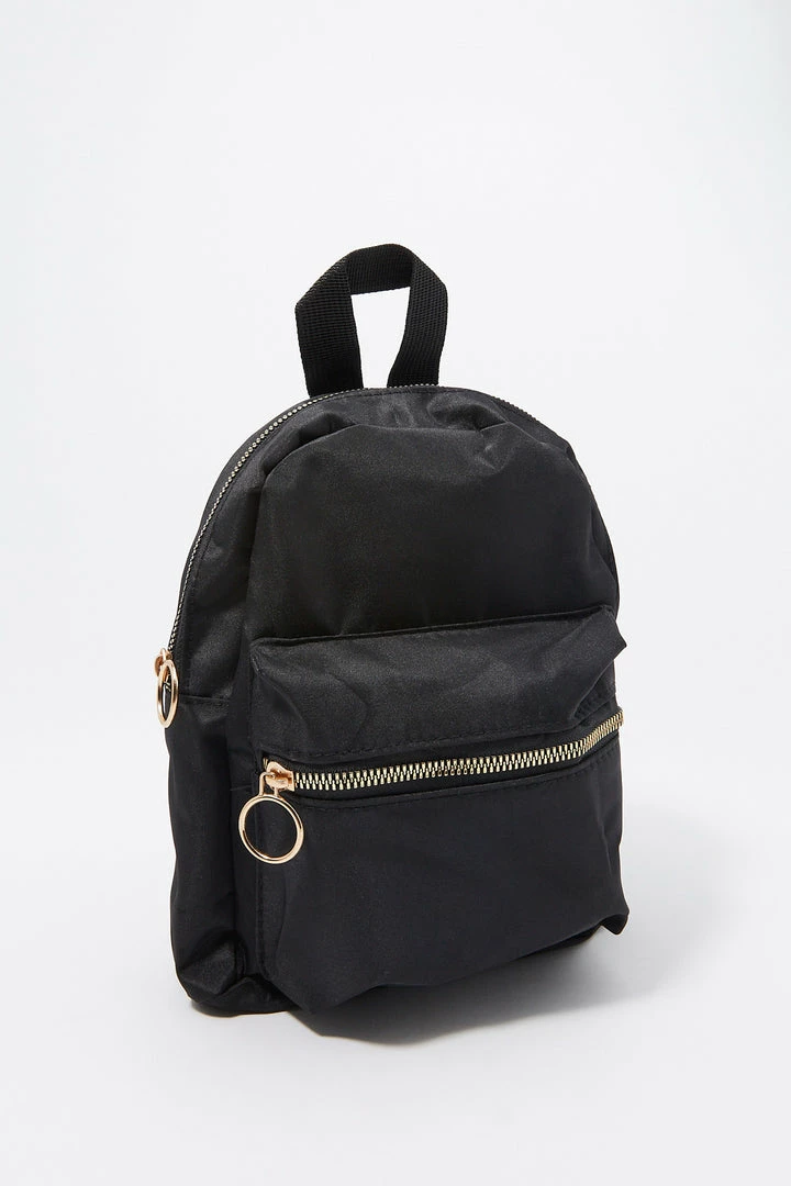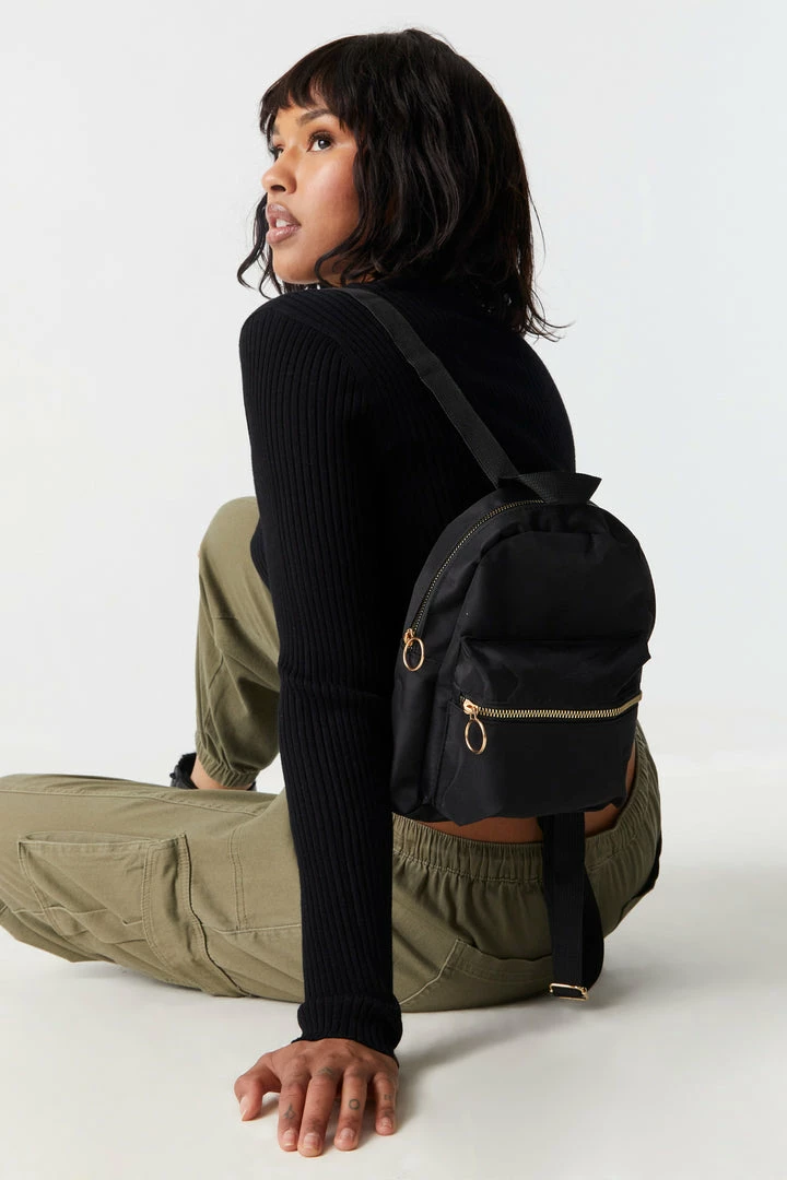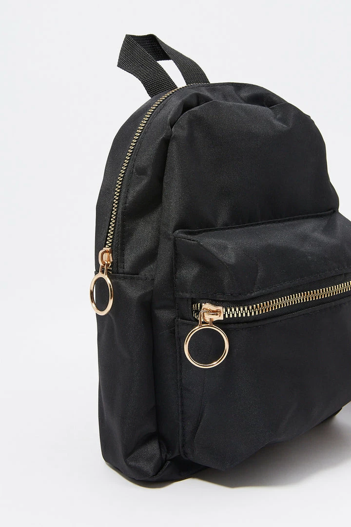 Get ready for your next adventure! Pack it up and hit the road, who knows where you’ll end up. This backpack features o-ring detailing, two zip-up pockets, a handle and adjustable back straps.